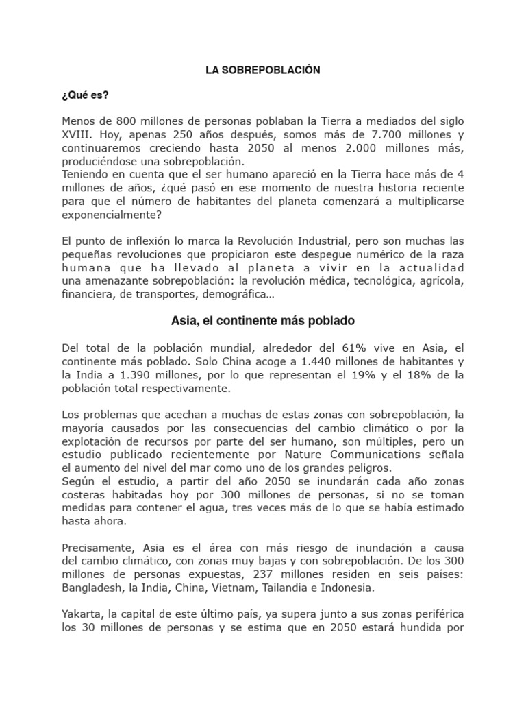 una amenazante sobrepoblación: la revolución médica, tecnológica, agrícola,