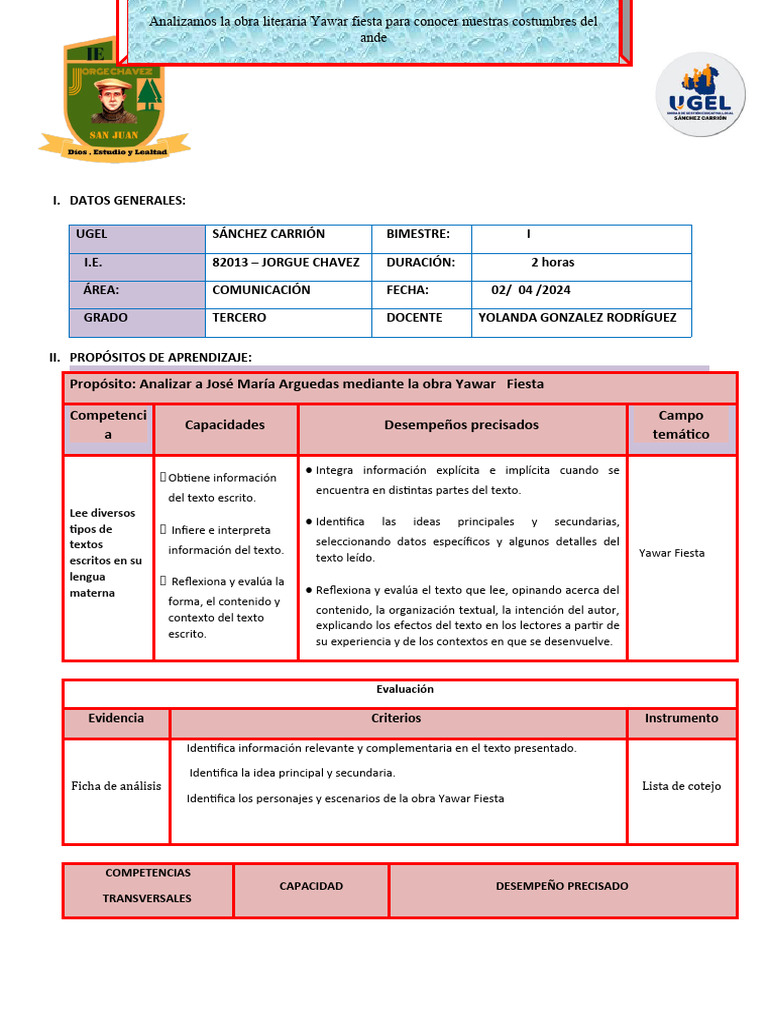 I.E. 82013 – JORGUE CHAVEZ DURACIÓN: 2 horas