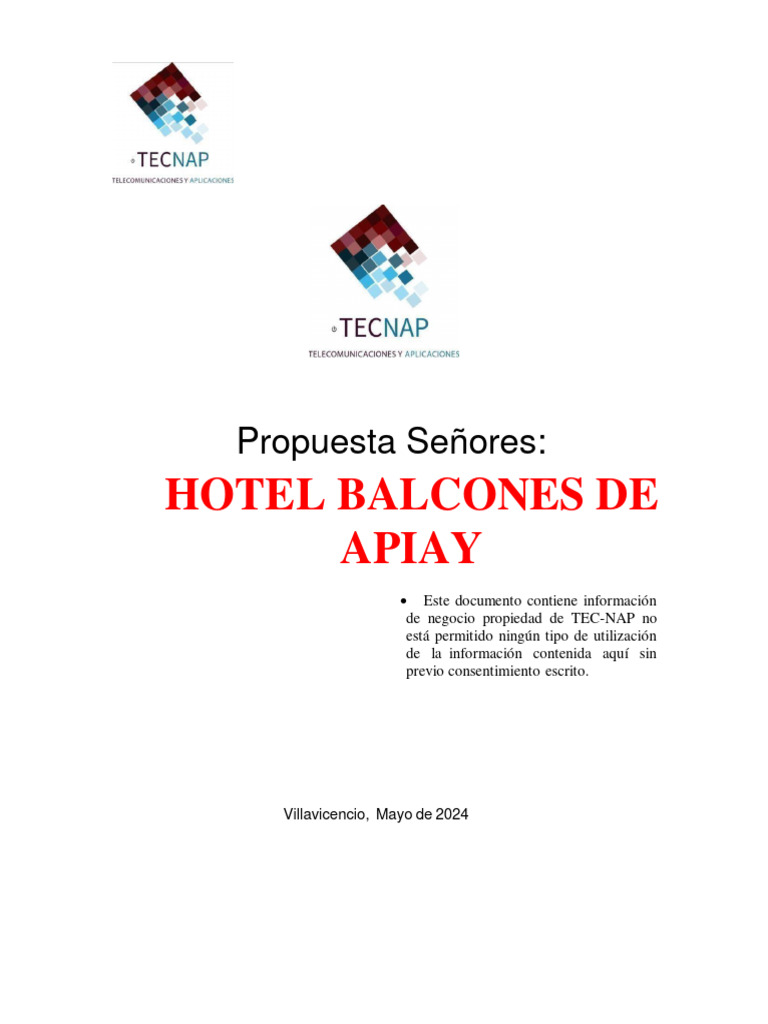 Mediante la presente TECNAP se permite presentar a HOTEL BALCONES DE APIAY