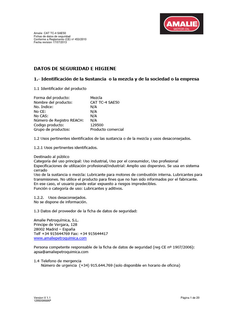 1.- Identificación de la Sustancia o la mezcla y de la sociedad o la empresa