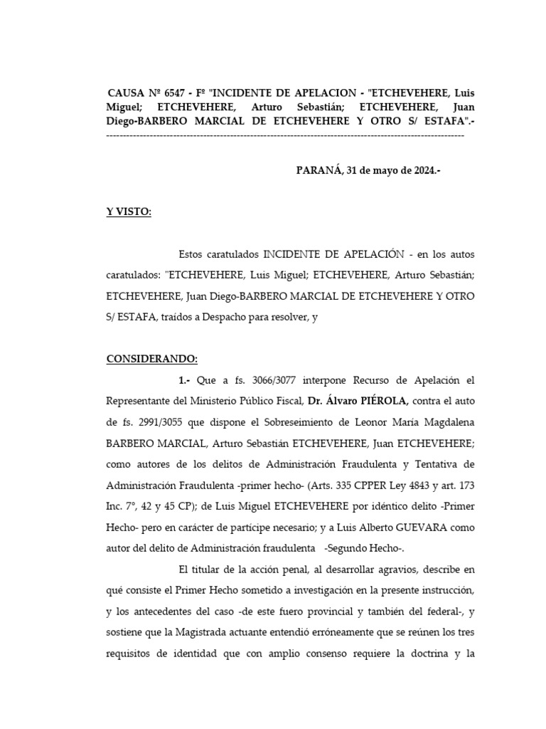 caratulados: "ETCHEVEHERE, Luis Miguel; ETCHEVEHERE, Arturo Sebastián;