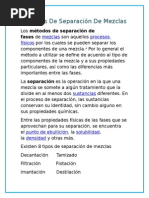 Es un procedimiento físico que sirve para separar una mezcla heterogénea compuesta