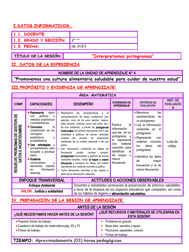 IV. PREPARACIÓN DE LA SESIÓN DE APRENDIZAJE