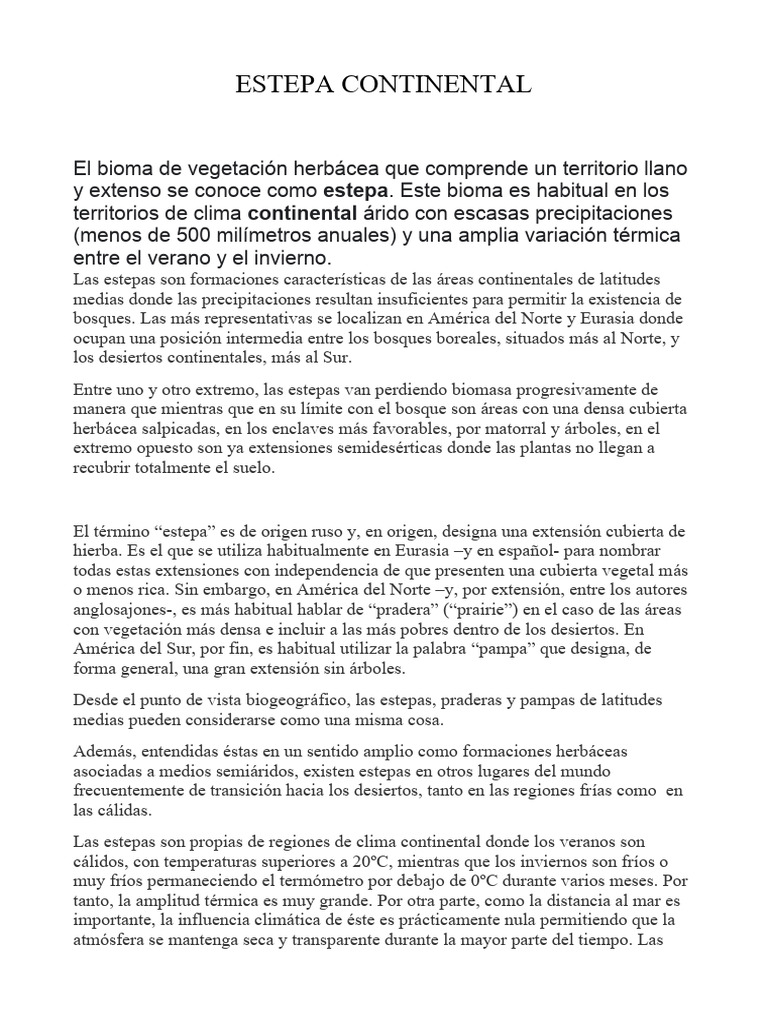 y extenso se conoce como estepa. Este bioma es habitual en los