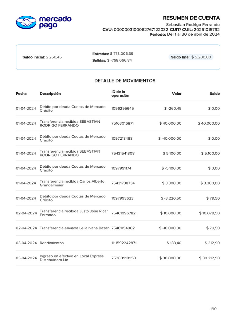 01-04-2024 Débito por deuda Cuotas de Mercado 1097993623 $ -3.220,50 $ 79,50