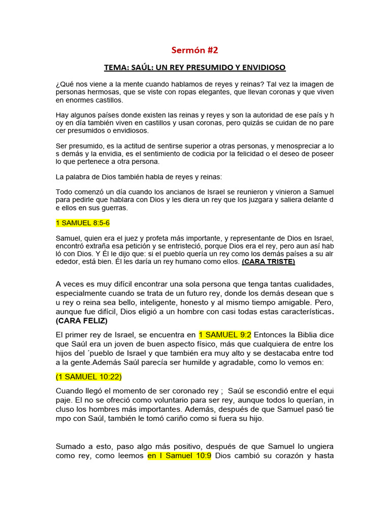 TEMA: SAÚL: UN REY PRESUMIDO Y ENVIDIOSO