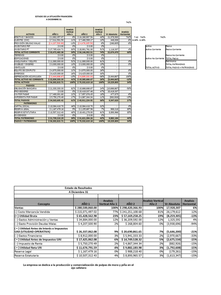 ACTIVOS AÑO 1 Año 1 AÑO 2 Año 2 Vr Absoluto Horizontal