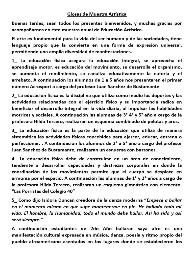A continuación estudiantes de 2do Año bailaran saya afro es una
