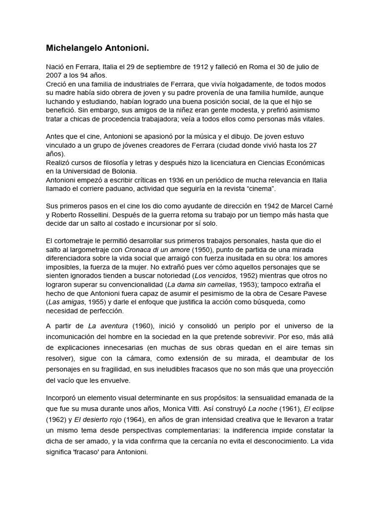 cinematográfica. Siendo heredero de la tradición neorrealista, Antonioni desarrolló desde los