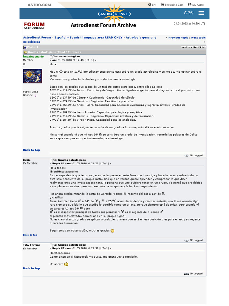Posts: 2882 "Los grados astrológicos mencionados fueron confirmados, salvo el 22º00' a 23º Cáncer - Capricornio. Para este