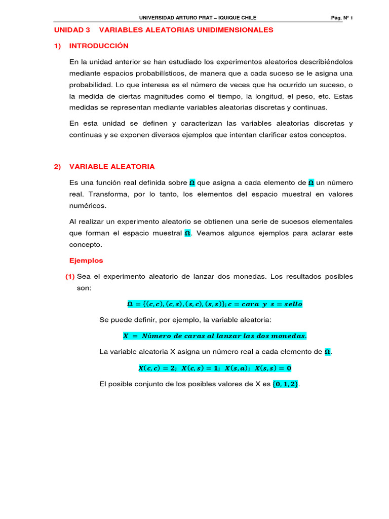 UNIDAD 3 VARIABLES ALEATORIAS UNIDIMENSIONALES