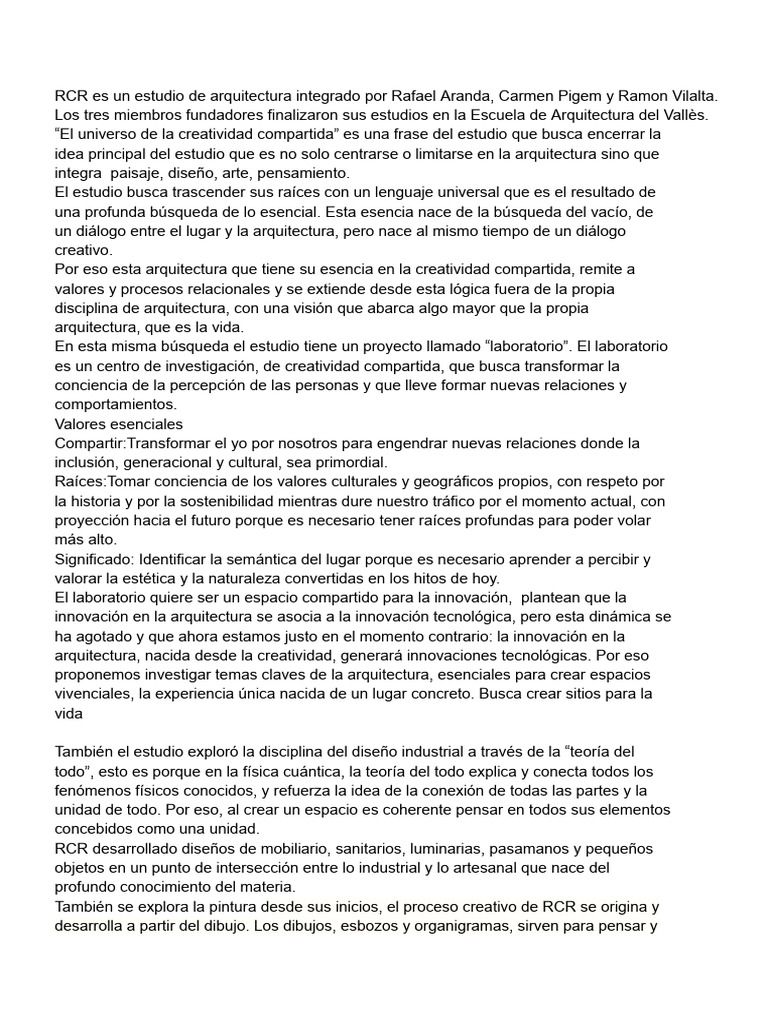 También se explora la pintura desde sus inicios, el proceso creativo de RCR se origina y