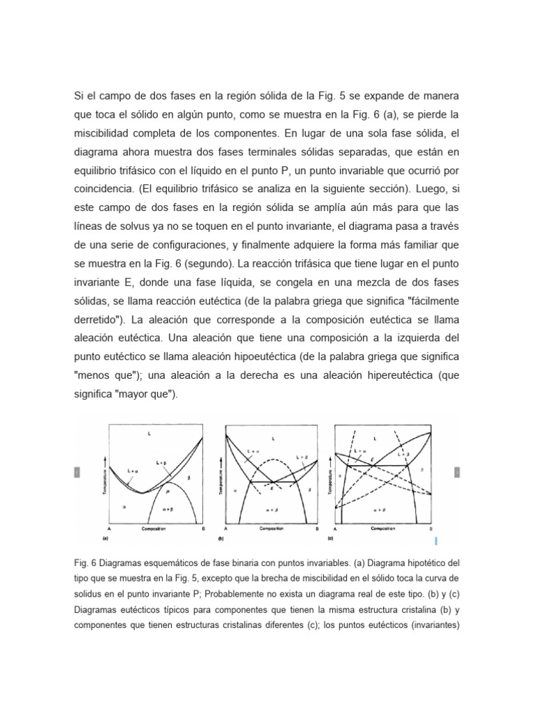 componentes que tienen estructuras cristalinas diferentes (c); los puntos eutécticos (invariantes)
