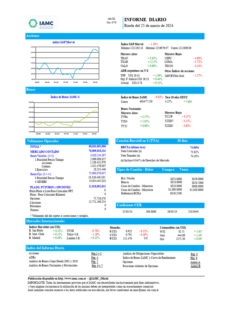 S&P/BYMA Telecomunic. 23,451.030 - - -2.69% 8.60% 24.74% 450.10% 4,263.060 28,621.610 - - 58.92% - - -