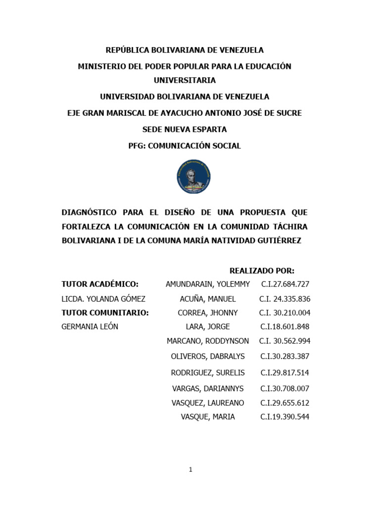 BOLIVARIANA I DE LA COMUNA MARÍA NATIVIDAD GUTIÉRREZ