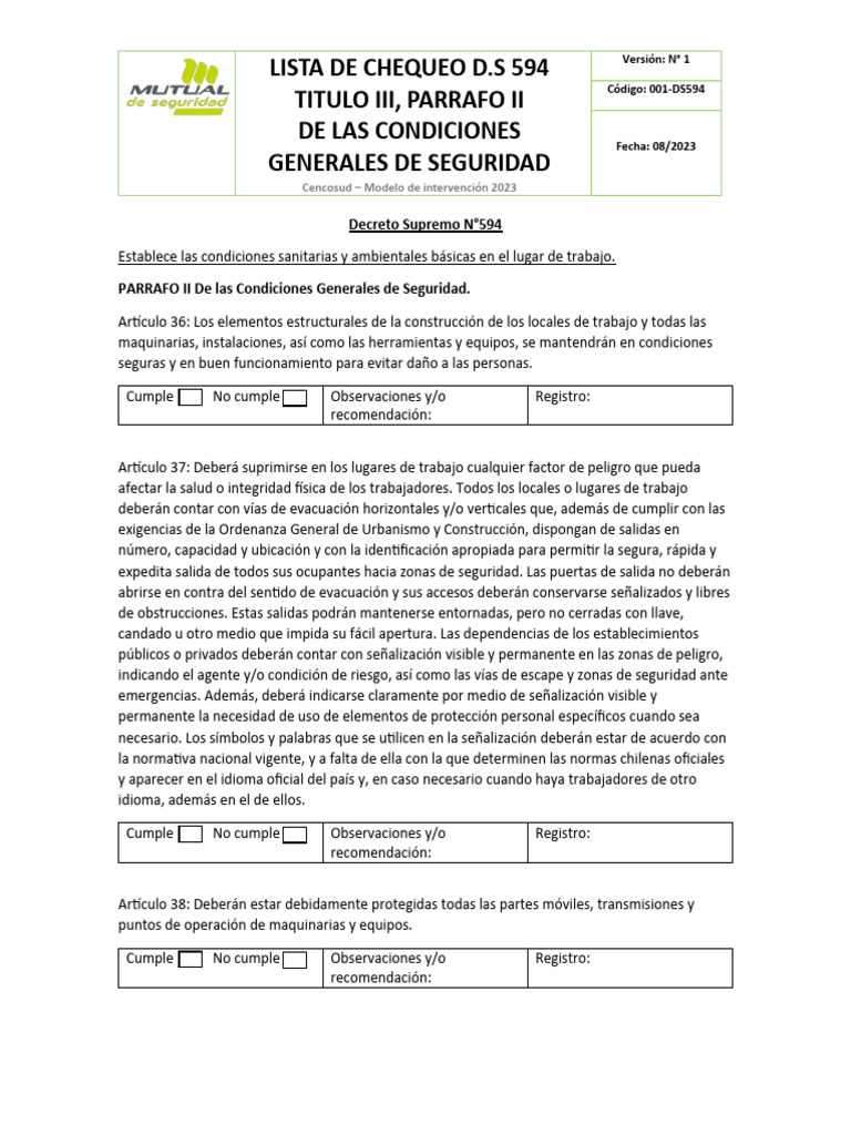 PARRAFO II De las Condiciones Generales de Seguridad.