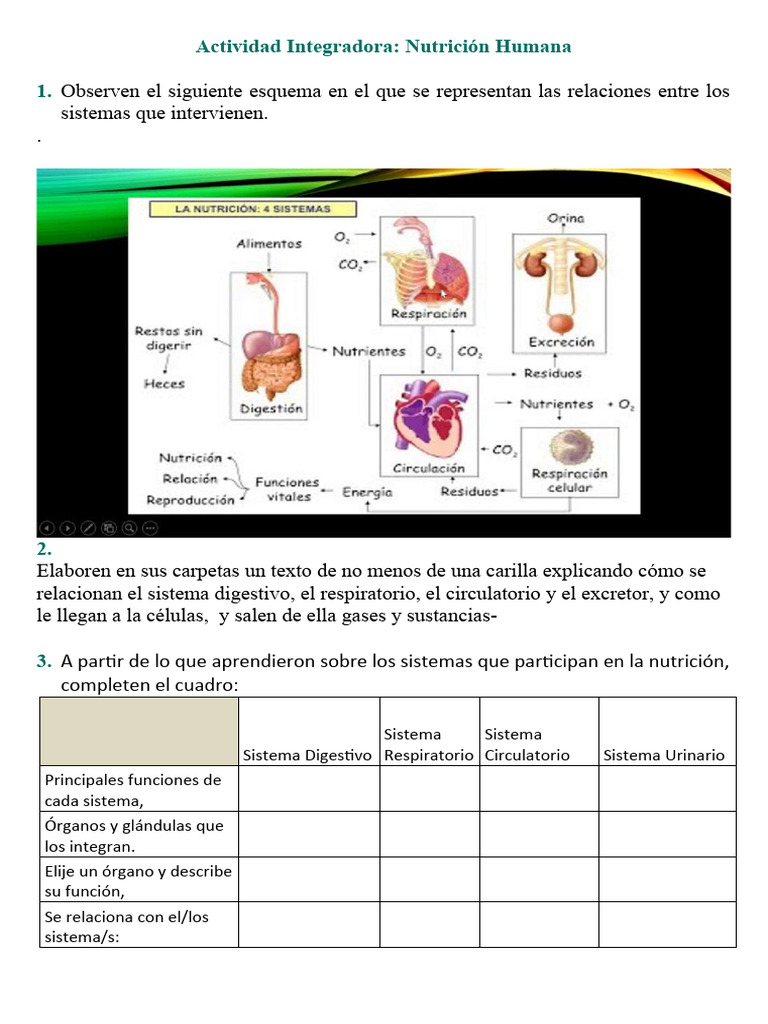 3. A partir de lo que aprendieron sobre los sistemas que participan en la nutrición,