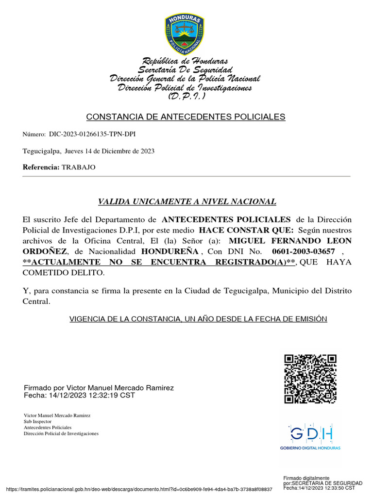 CONSTANCIA DE ANTECEDENTES POLICIALES