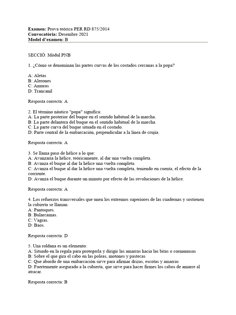 Examen: Prova teòrica PER RD 875/2014