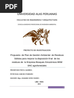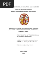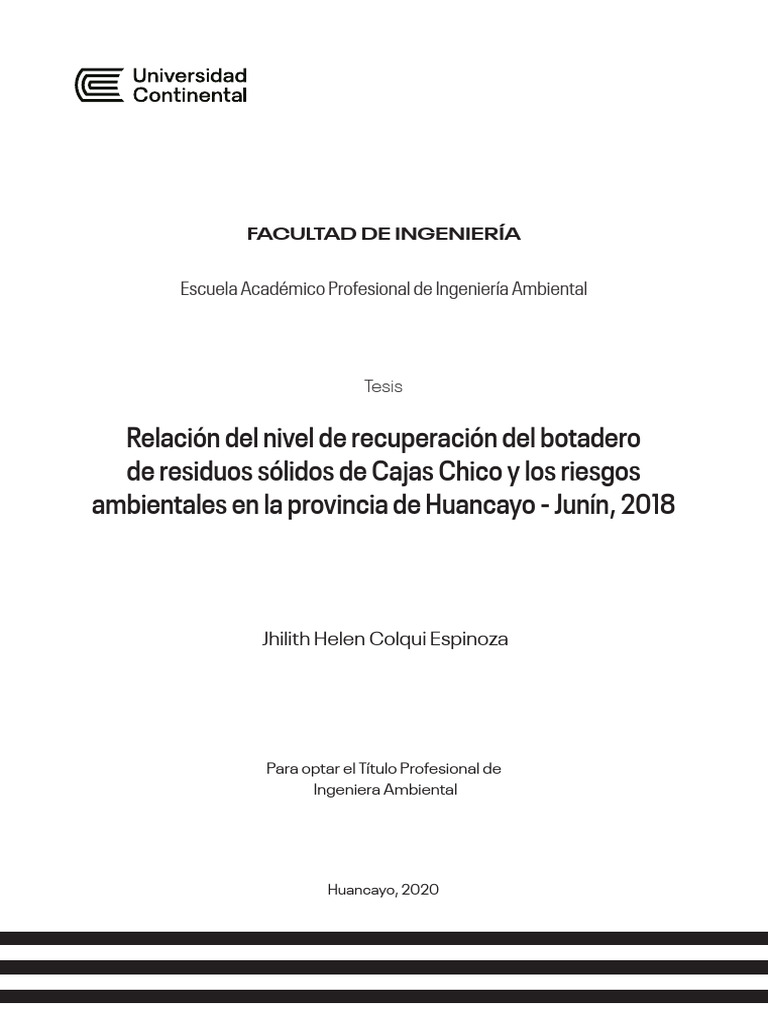 Título de la Tesis: Relación del nivel de recuperación del botadero de residuos sólidos de Cajas Chico y los riesgos ambientales en la