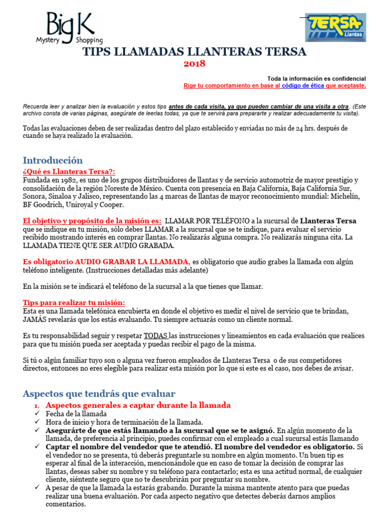 El objetivo y propósito de la misión es: LLAMAR POR TELÉFONO a la sucursal de Llanteras Tersa