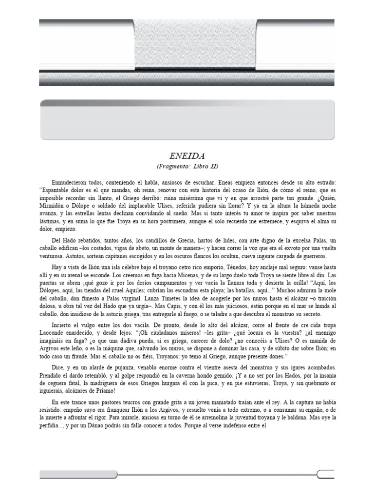 caballo, don insidioso de la astucia griega, tras entregarle al fuego, o se taladre a que descubra el monstruo su secreto.