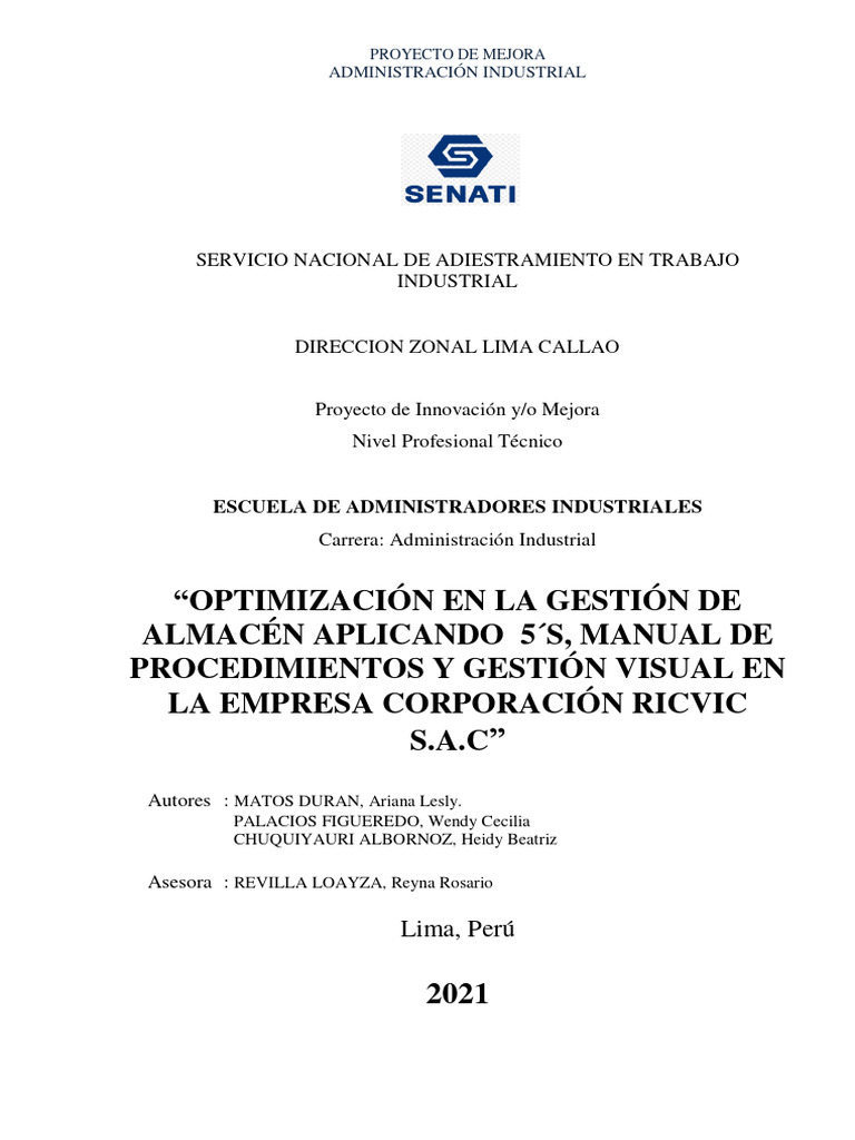 El presente proyecto de mejora fue