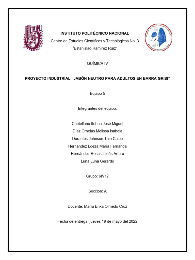 PROYECTO INDUSTRIAL “JABÓN NEUTRO PARA ADULTOS EN BARRA GRISI”