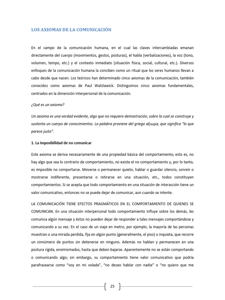 cabo desde que nacen. Los teóricos han determinado cinco axiomas de la comunicación, también