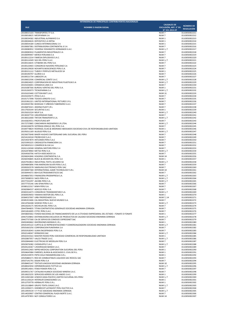 20100114349 SGS DEL PERU S.A.C. NUM 1, 7 0110050002221