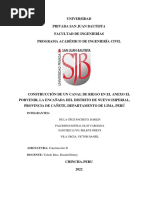 La Obra: “Construcción Canal de Riego San José de Sucre” estará constituido por los siguientes