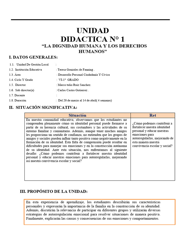 1.4. Ciclo Y Grado : VI-1° GRADO