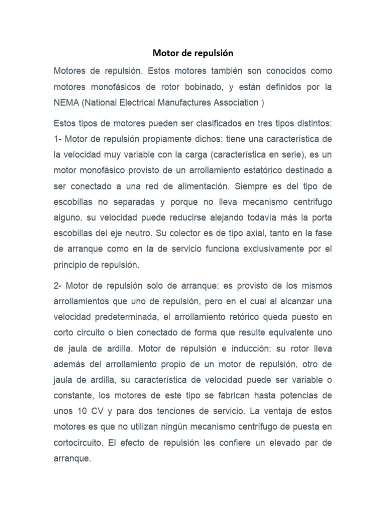 1- Motor de repulsión propiamente dichos: tiene una característica de