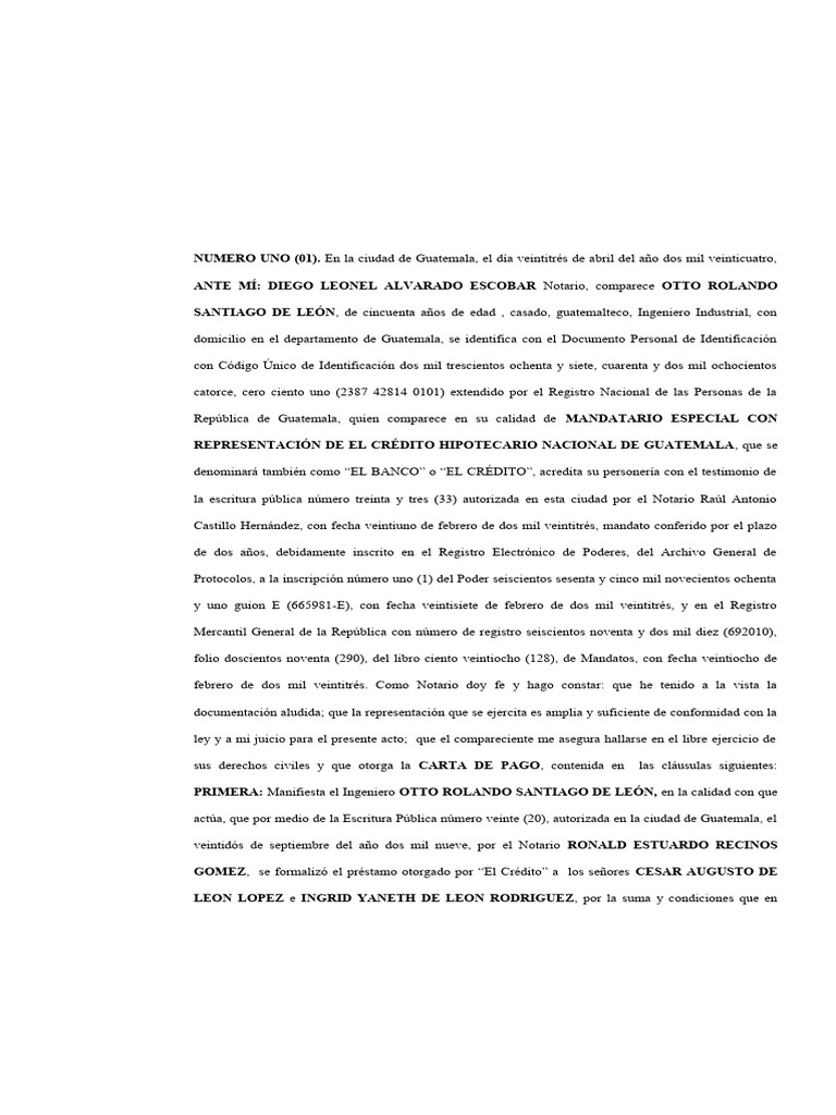 LEON RODRIGUEZ LA MÁS AMPLIA Y TOTAL CARTA DE PAGO por la operación identificada