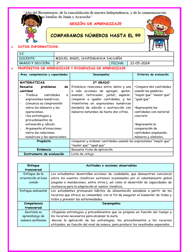 DOCENTE MIGUEL ANGEL SH. FECHA 21-05-24 2°