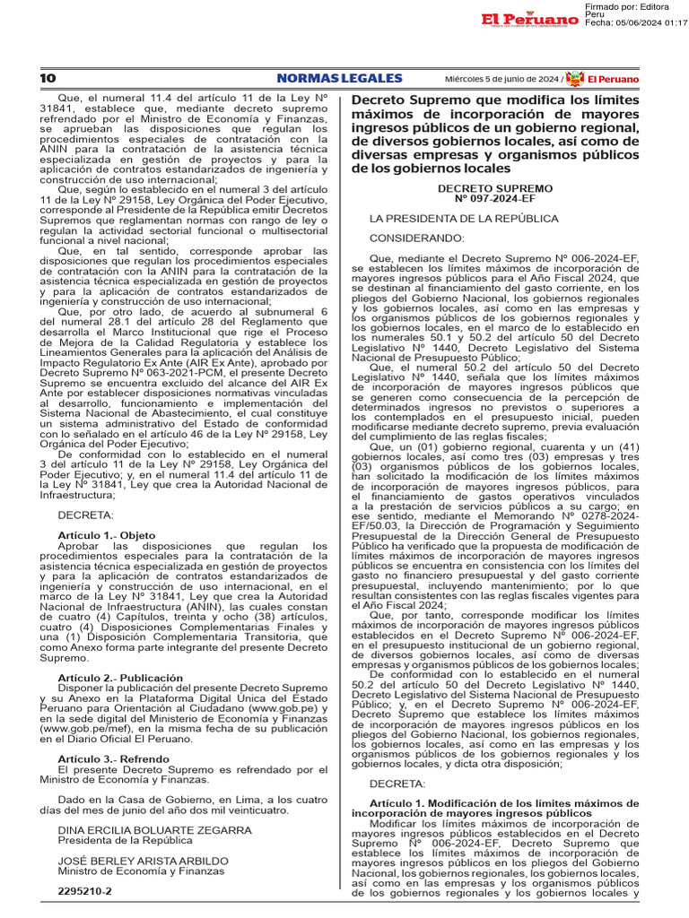 10 NORMAS LEGALES Miércoles 5 de junio de 2024 / El Peruano