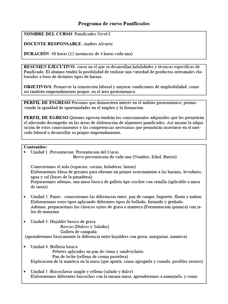 Programa de curso Panificados