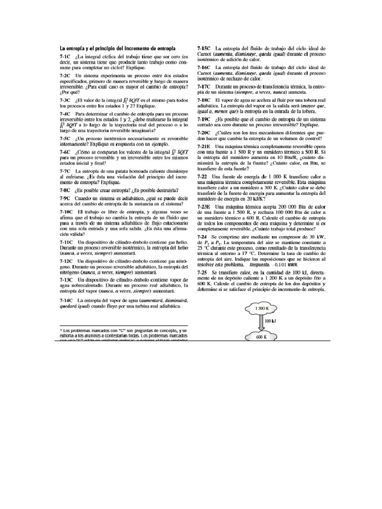 transferencia de calor. De lo contrario, la entropía debe aumentar ya que no hay cambios de