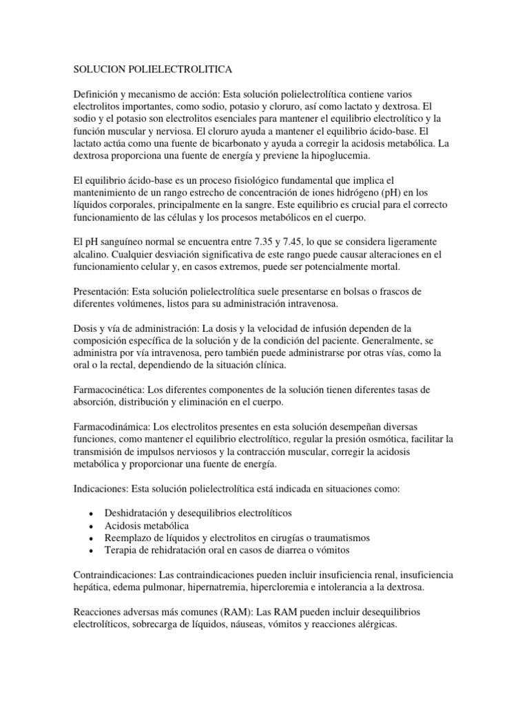 Definición y mecanismo de acción: Esta solución polielectrolítica contiene varios