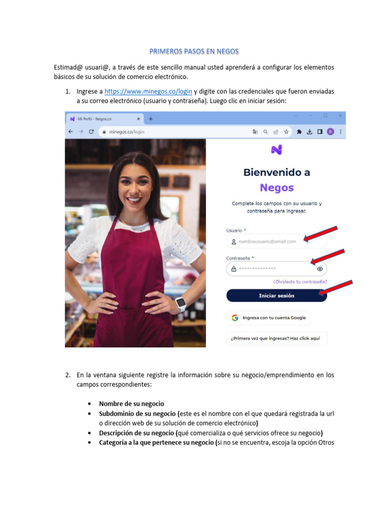 Subdominio de su negocio (este es el nombre con el que quedará registrada la url