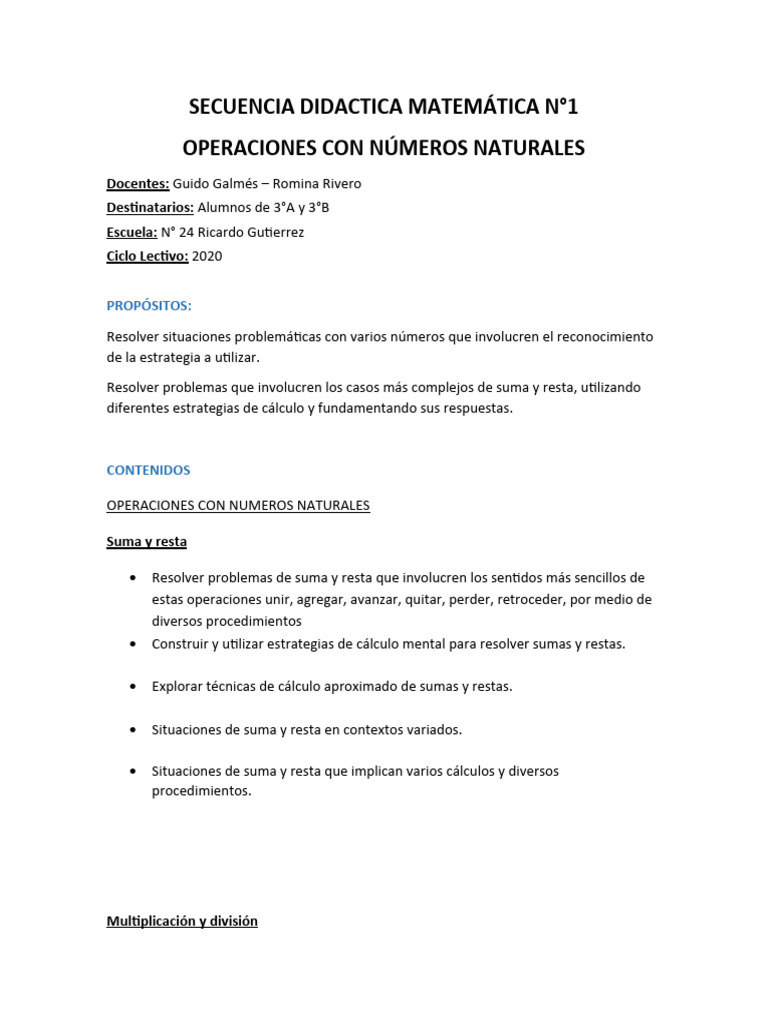 SECUENCIA DIDACTICA MATEMÁTICA N°1