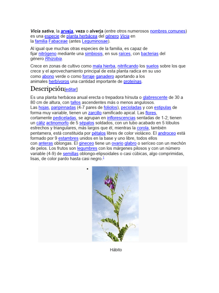 ον, latinizado en vĭcĭa, -ae, la veza o arveja (Vicia sativa L.,