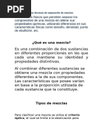 sobre los tipos de mezclas y las diferentes técnicas de separación con el