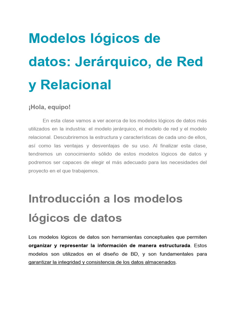 En esta clase vamos a ver acerca de los modelos lógicos de datos más