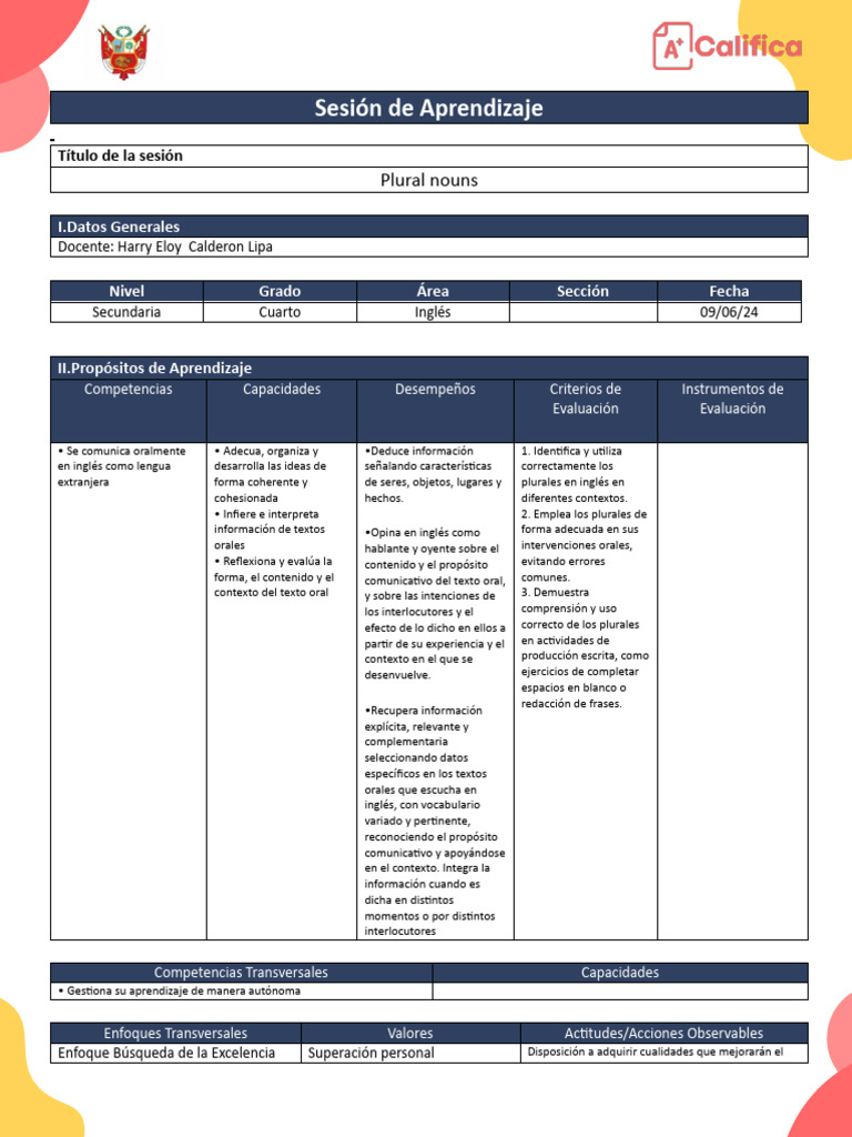 Sesión de Aprendizaje
