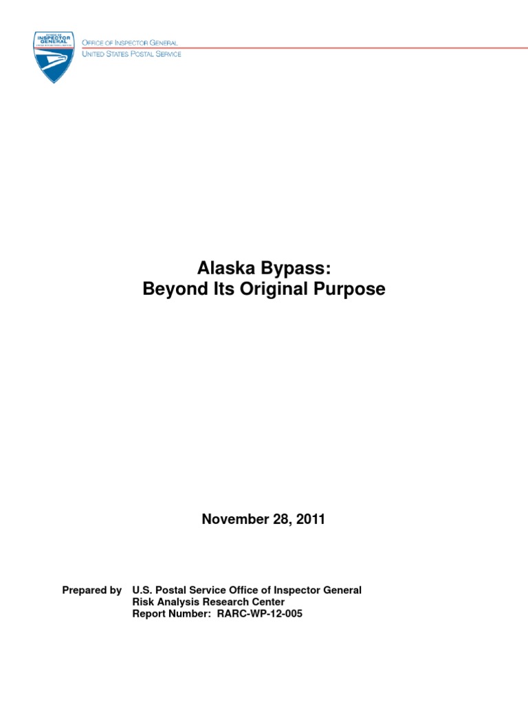 U.S. Postal Service Office of Inspector General November 28, 2011Alaska Bypass: Beyond Its Original Purpose RARC-WP-12-005i