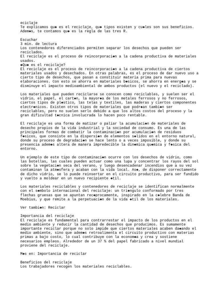 El reciclaje es el proceso de reincorporaci�n a la cadena productiva de ciertos