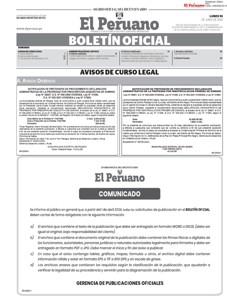2 BOLETÍN OFICIAL EL PERUANO I Lima, lunes 10 de junio de 2024