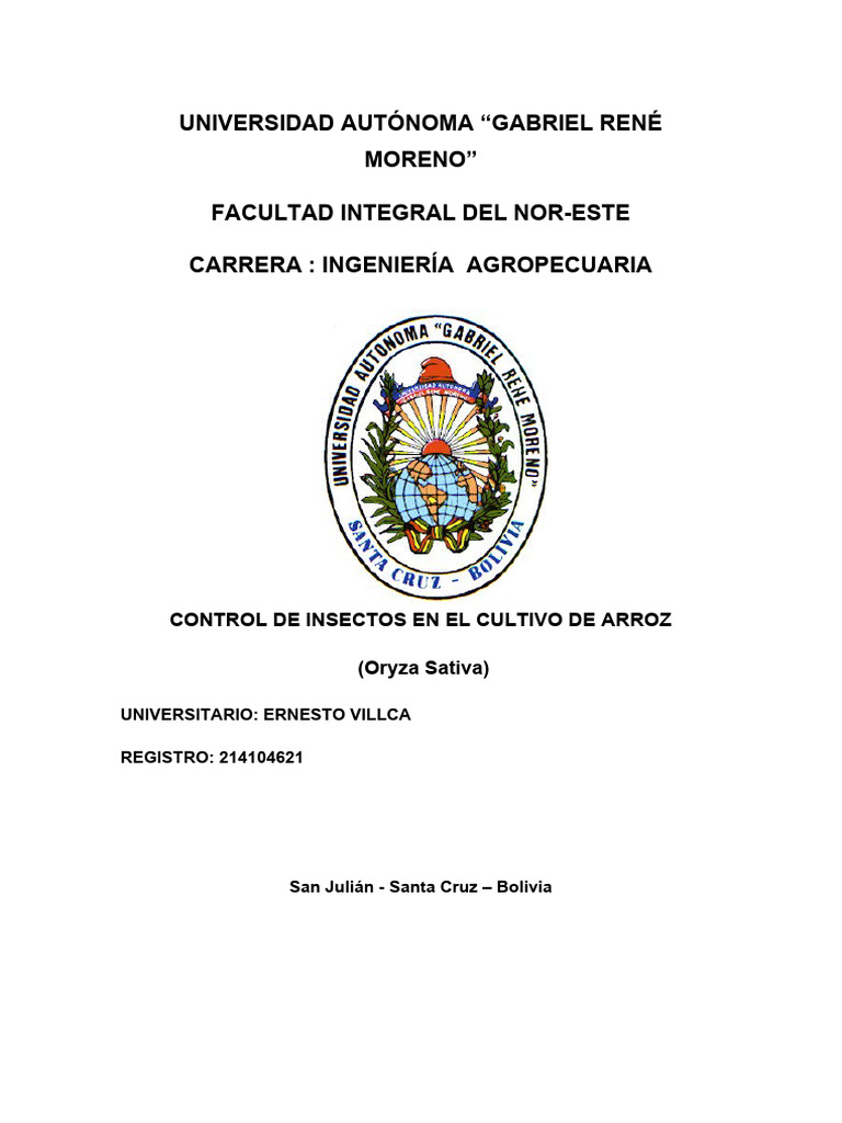 CONTROL DE INSECTOS EN EL CULTIVO DE ARROZ
