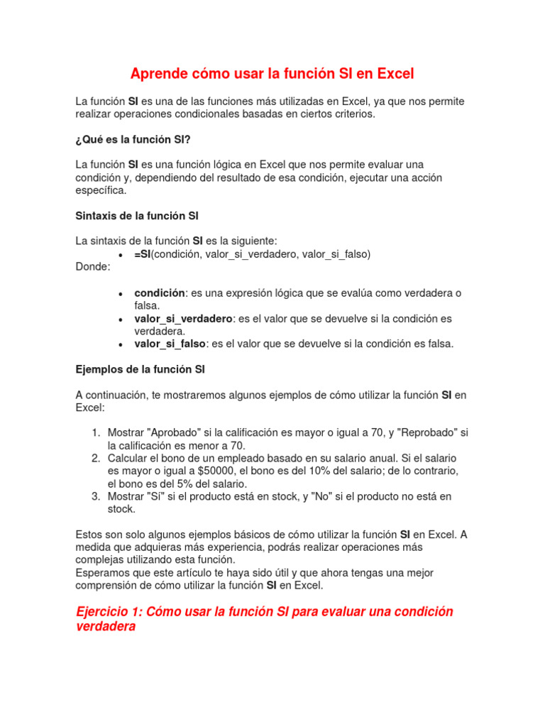 Recuerda que la función SI evalúa una condición y devuelve un resultado si la